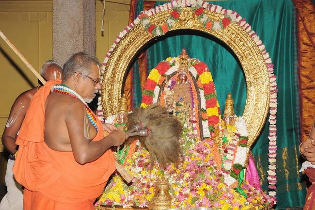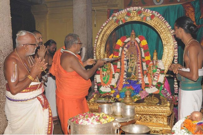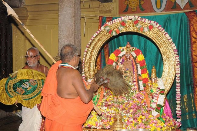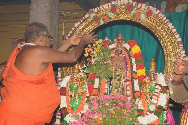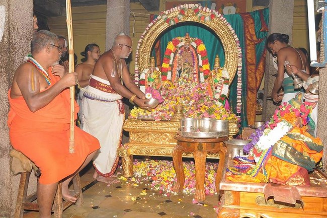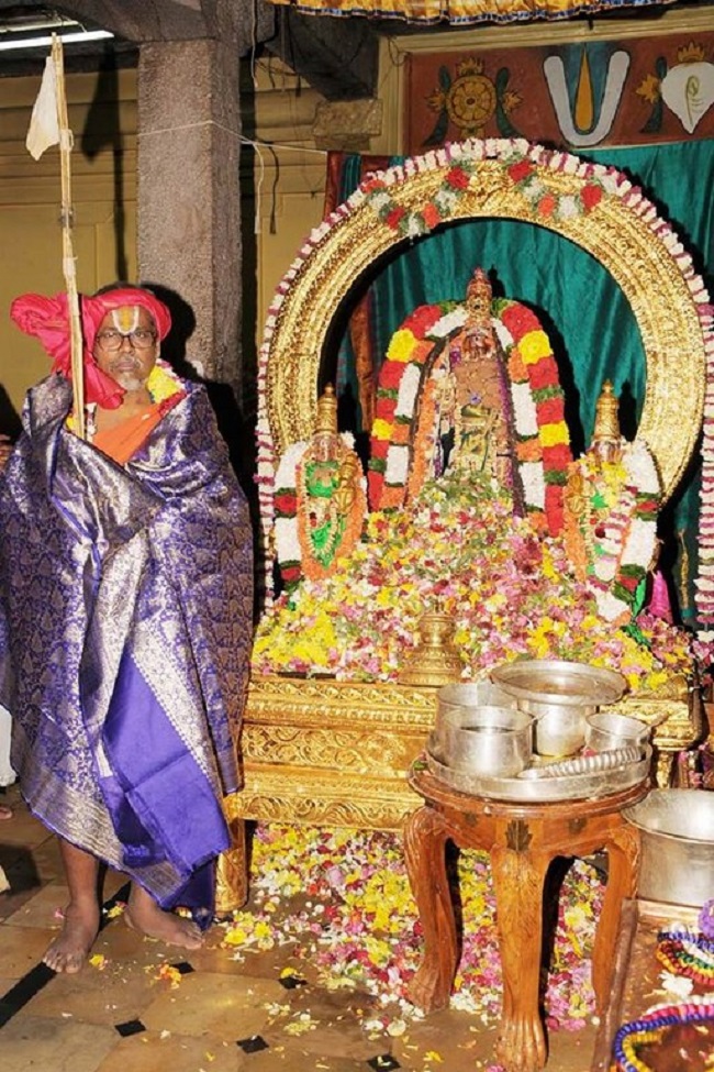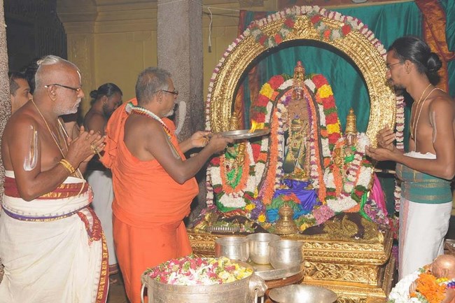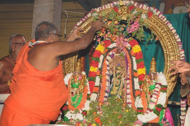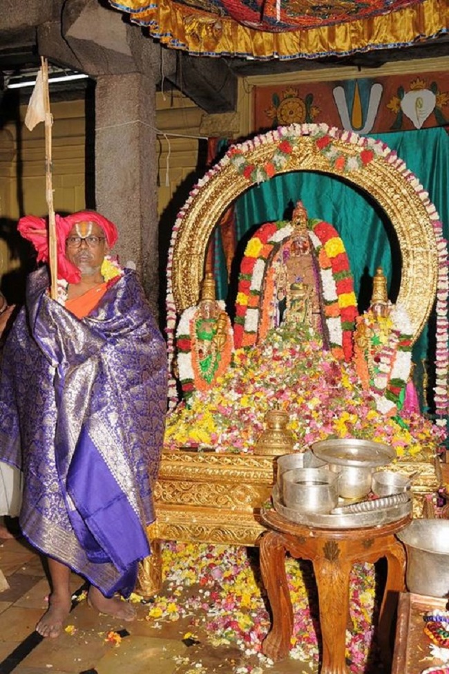 On, 6 March 2014,Jaya Varusha Masi Pooram; Brahmotsavam concluded in a grand manner at Lower Ahobilam Sri Lakshmi Narasimha Swami Temple. On this occasion being Day-10 in the Morning Sri Prahaladavardan had Thiruveethi Purappadu in Allum Pallaku where Porvaikalaithal utsavam took place followed by Theerthavari held in the temple Pushkarani.In the evening Dwadasa Aradhanam took place For Sri Prahaladavardan along with ubhya nachiyars followed by Thiruveethi Purappadu in Garuda Vahanam. HH 46th Srimath Azhagiyasingar, Srivan Sathakopa Sri Ranganatha Yathindra Maha Desikan took part in the brahmotsavam and performed mangalasasanam.Lot of astikas participated during Day-10 of the brahmotsavam and had the blessings of Srimath Azhagiyasingar and Divya Dampathis